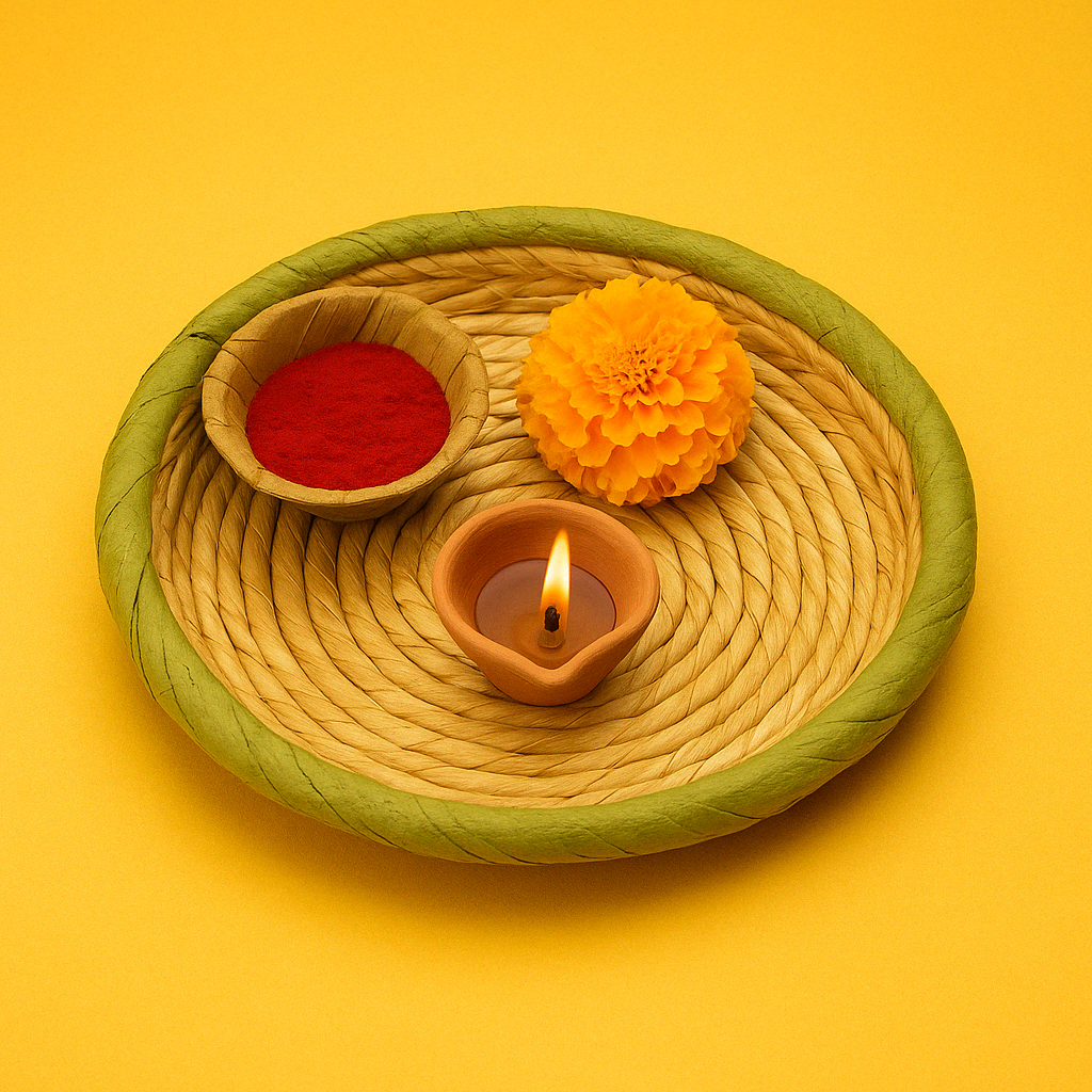 This eco-friendly thali is crafted from biodegradable materials, making it perfect for rituals with environmental consciousness. Ideal for pujas, havans, and festivals while supporting sustainable traditions.