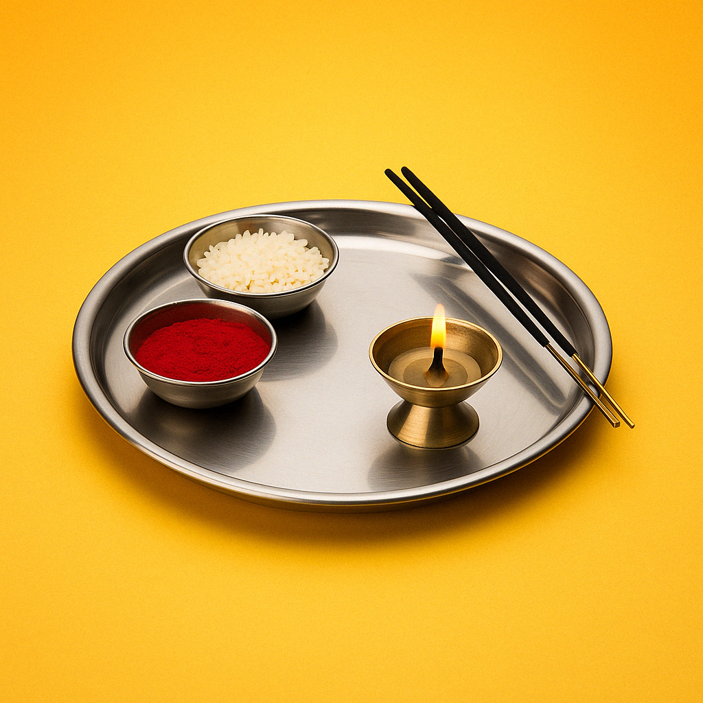 Crafted from stainless steel, this thali is ideal for arranging diya, roli, rice, and offerings during puja. It is rust-resistant, easy to clean, and designed for long-term use in households and temples.